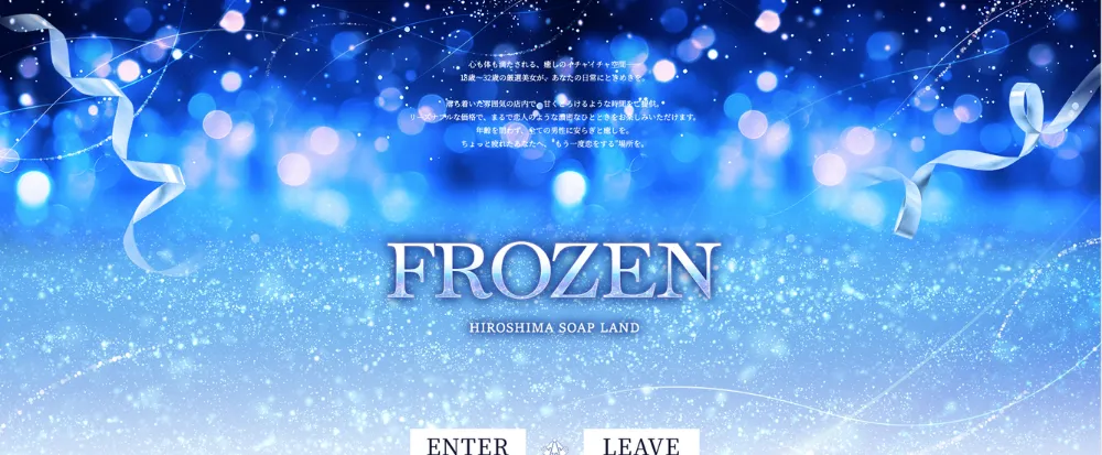 フローズンは、広島・薬研エリアにある人気ソープランドです。流川の中心地という立地の良さに加え、早朝6時から営業と幅広い時間帯で遊べる使い勝手の良さが魅力の一軒です。